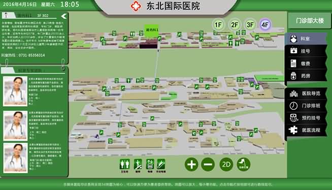 科室介紹、專家介紹、科室3D導(dǎo)航、就診流程、掛號(hào)、門診排班、醫(yī)院導(dǎo)覽、意見反饋、多語言、觸摸交互、系統(tǒng)數(shù)據(jù)綜合與分析等;
