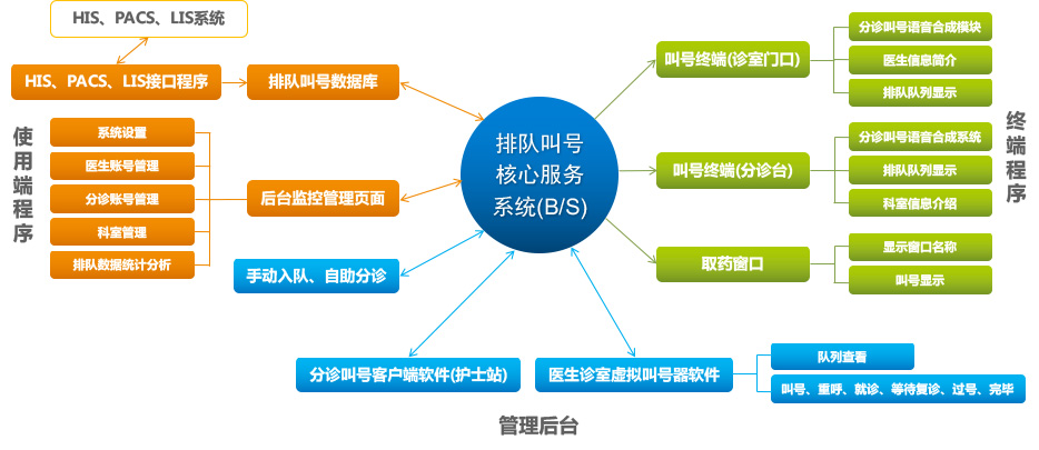 需要與體檢系統(tǒng)對接,安裝在體檢中心服務(wù)器內(nèi),可根據(jù)不同的環(huán)境、不同的項(xiàng)目、不同的導(dǎo)檢規(guī)則,經(jīng)過系統(tǒng)邏輯運(yùn)算合理分配人員,保證每個體檢人員快速完成體檢,并能對終端設(shè)備進(jìn)行有效管理。